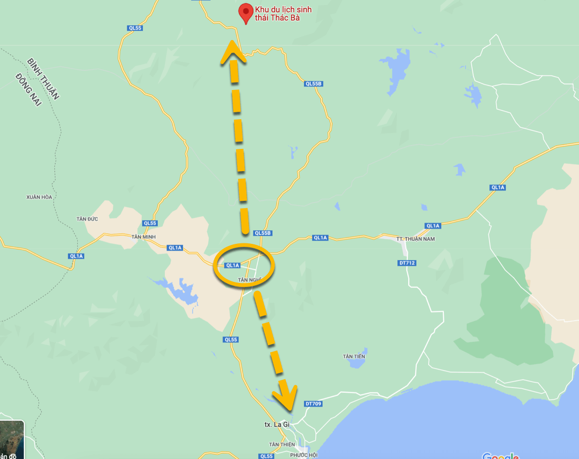 Sáng khởi hành từ TPHCM, đi theo con dường quốc lộ 1 đến gần ngã ba 46 quẹo trái lên Tánh Linh