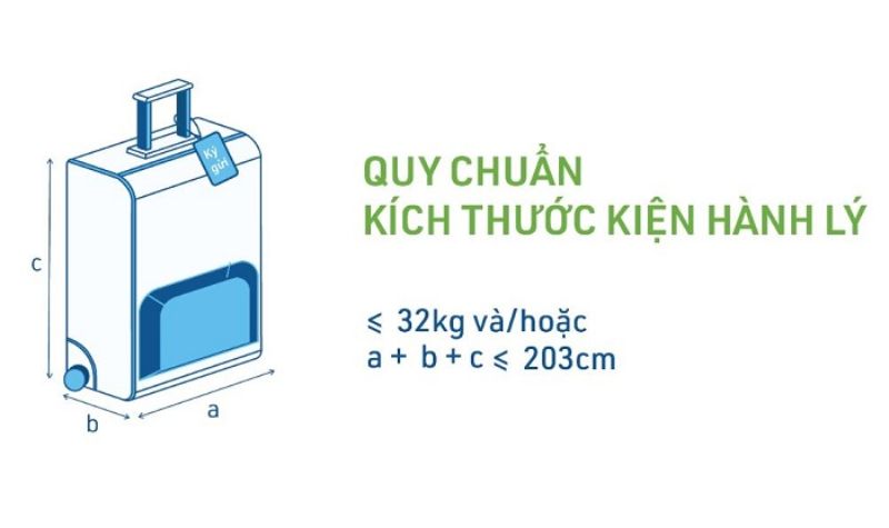 - Hành lý có trọng lượng không vượt quá 32kg, tổng kích thước 3 chiều không quá 203cm. Nếu vượt quá tiêu chuẩn quý khách có thể sắp xếp đóng gói lại hoặc mua thêm hành lý.