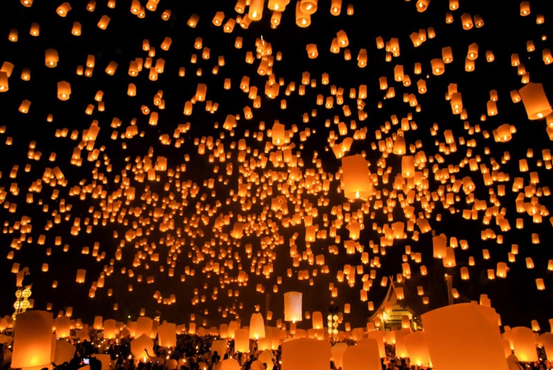 Lễ hội hoa đăng Yi Peng và lễ hội Loy Krathong được diễn ra vào ngày trăng tròn tháng 12 âm lịch Thái Lan. Hai lễ hội này trùng 1 thời điểm và được tổ chức hàng năm trên khắp đất nước Thái Lan. Đây là hai lễ hội lớn thứ 2 sau Tết truyền thống Songkran Thái, và là dịp đặc biệt để hàng ngàn người tụ tập để “khom loi” thả đèn lồng lên bầu trời vào ban đêm, nên còn có tên là lễ hội ánh sáng.